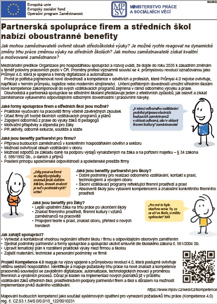 Partnerství skol a firem přispívá k výchově kompetentního a vzdělaného absolventa školy plně připraveného pro regionální trh práce.