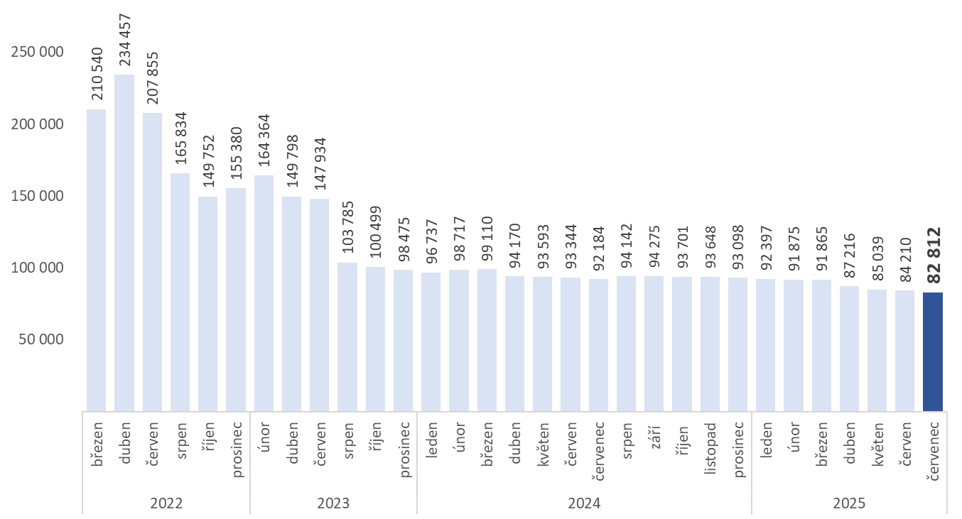 Počet uprchlíků zapojených na český trh práce dlouhodobě roste. V červenci letošního roku bylo evidováno 169 959 pracovněprávních vztahů mezi držiteli dočasné ochrany, zatímco před rokem to bylo 136 373 a před dvěma lety 112 358. Struktura jejich uplatnění se přitom výrazně nemění – většina stále působí na nízkokvalifikovaných pozicích, například jako pomocní pracovníci ve stavebnictví či výrobě.